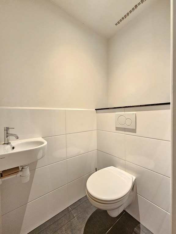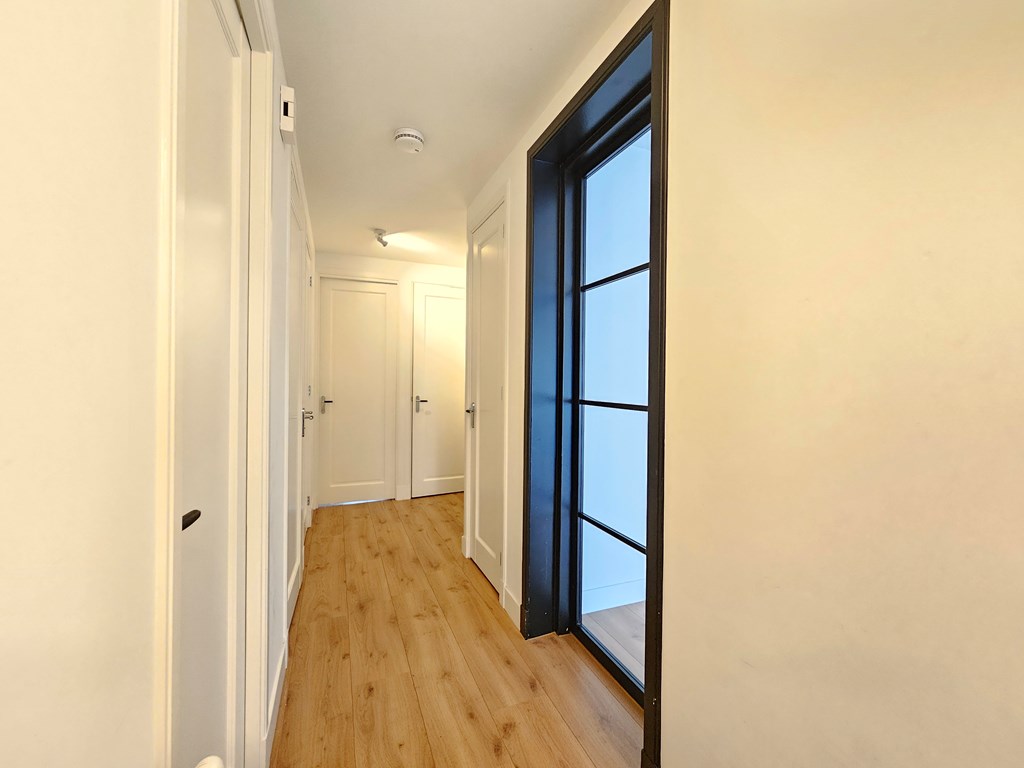 Ouderslaapkamer met de deur naar de tuin en de tweede slaapkamer is aan de voorkant. De badkamer heeft een inloopdouche en dubbel wastafel. Het toilet is apart.