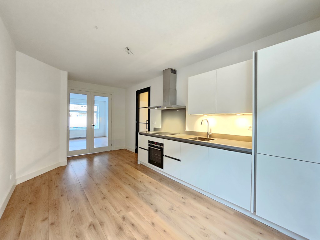 Grote woonkamer aan de voorzijde met en-suite eetkamer/keuken aan de tuinzijde met toegang tot de tuin. De keuken is uitgerust met 4-pits inductiekookplaat, oven/magnetron combo, koelkast/vriezer en de vaatwasser.