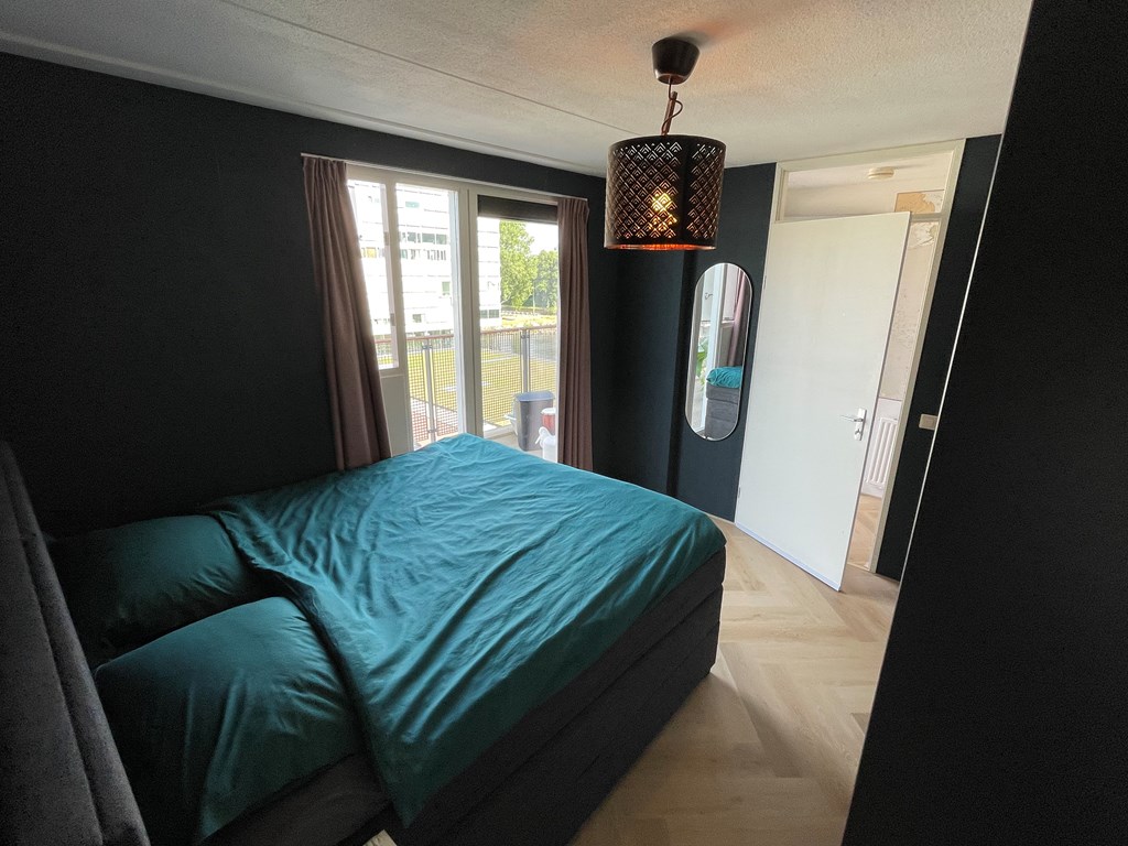 De ouderslaapkamer (ca. 3.75x3.27 = 12.28m2) bevindt zich aan de voorzijde van de woning met tweepersoonsbed en garderobekast. Vanuit hier is er toegang tot de ruimte waar de wasmachine en droger staat. De tweede slaapkamer (ca. 4.74x2.63 = 12.48m2) grenst aan woonkamer.