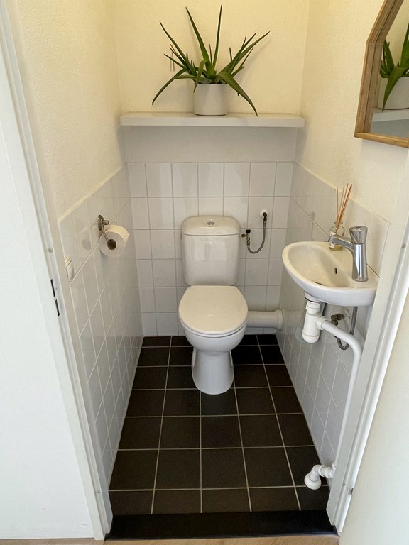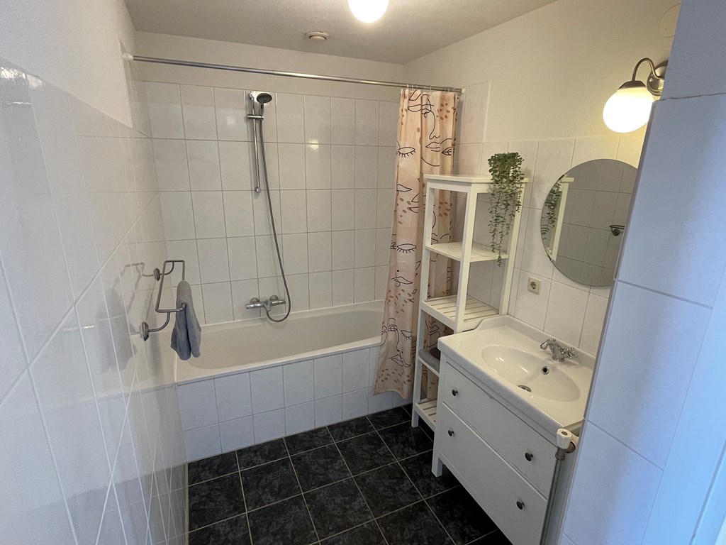 De badkamer (ca. 2.44x1.81 = 4.44m2) is voorzien van ligbad / douche en een enkele wastafel.