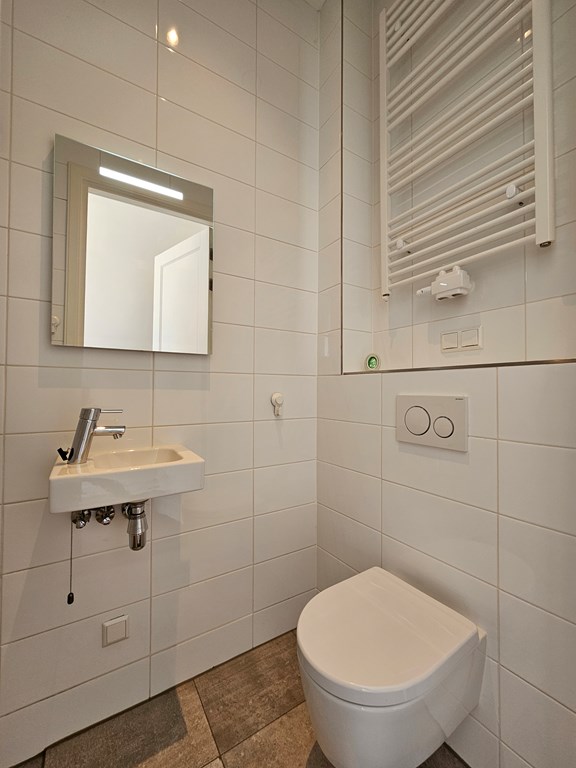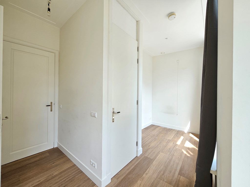 Op de hoek bevindt zich de woonkamer met open keuken voorzien van koel/vriescombinatie, 5-pits gasfornuis, oven/magnetron en vaatwasser. Aan de straatkant bevindt zich de slaapkamer met balkon op het oosten. en en-suite badkamer met inloopdouche.